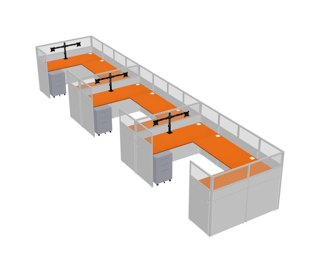Système De Panneaux En U Orange Pour 3 Personnes + Bras De Moniteur (bras Doubles) + Tiroirs Mobiles En Métal Pour 3 Utilisateur(s)