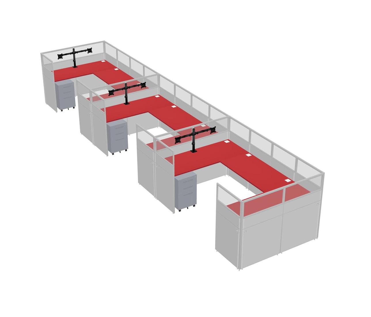 Système De Panneaux En U Prism Red Pour 3 Personnes + Bras D'écran (bras Doubles) + Tiroirs Mobiles En Métal Pour 3 Utilisateur(s)