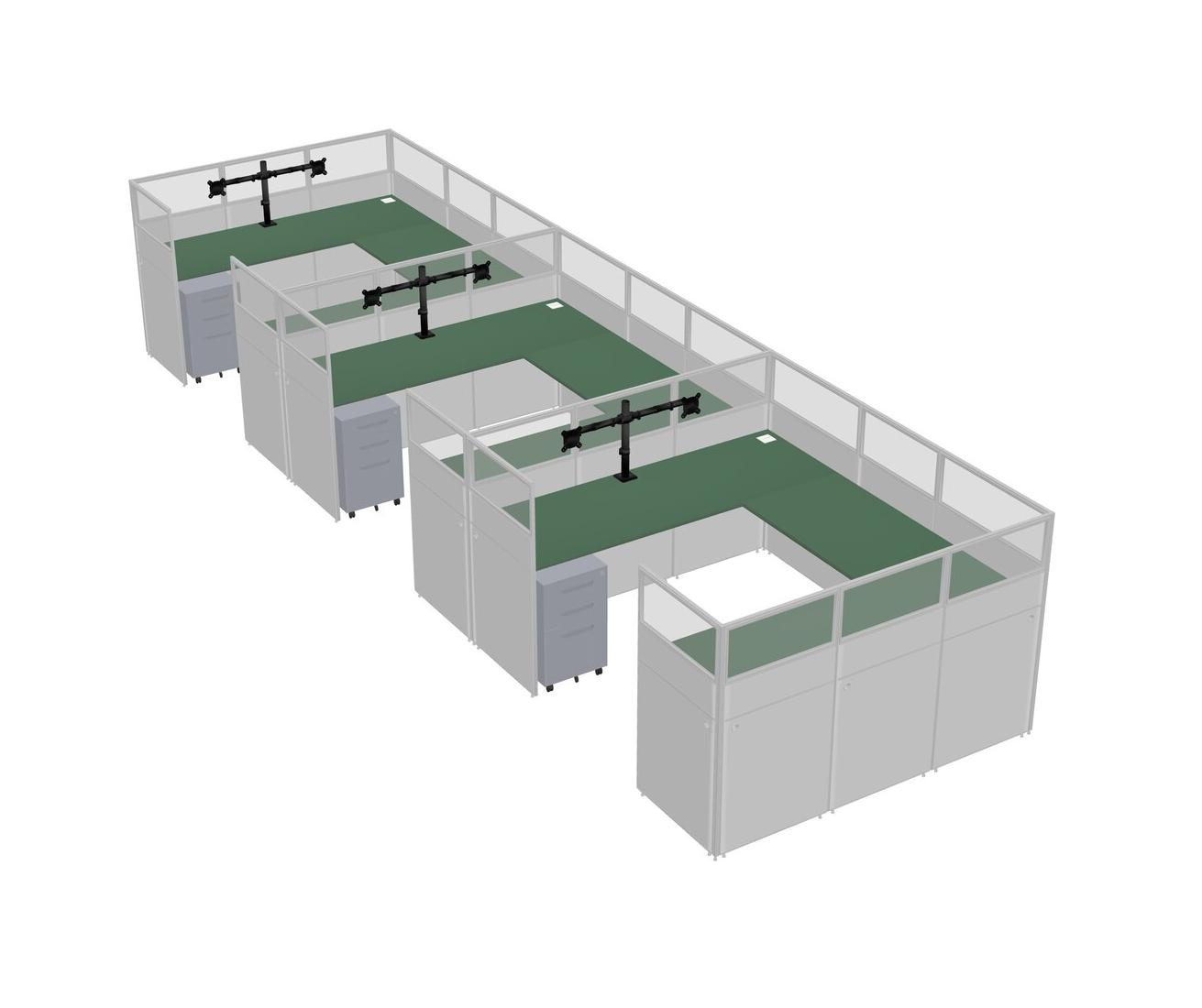 Système De Panneaux En U Vert Pour 3 Personnes + Bras De Moniteur (bras Doubles) + Tiroirs Mobiles En Métal Pour 3 Utilisateur(s)