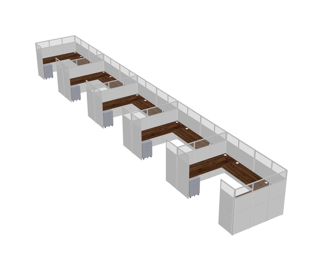 Système De Panneaux En U En Noyer Columbia Pour 5 Personnes + Tiroirs Mobiles En Métal Pour 5 Utilisateur(s)