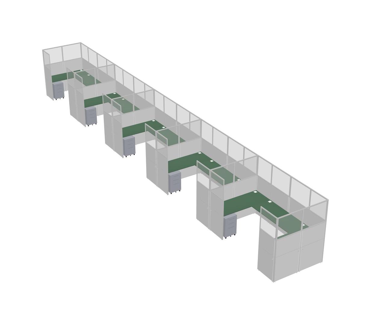 Système De Panneaux En U Vert Pour 5 Personnes + Tiroirs Mobiles En Métal Pour 5 Utilisateur(s)