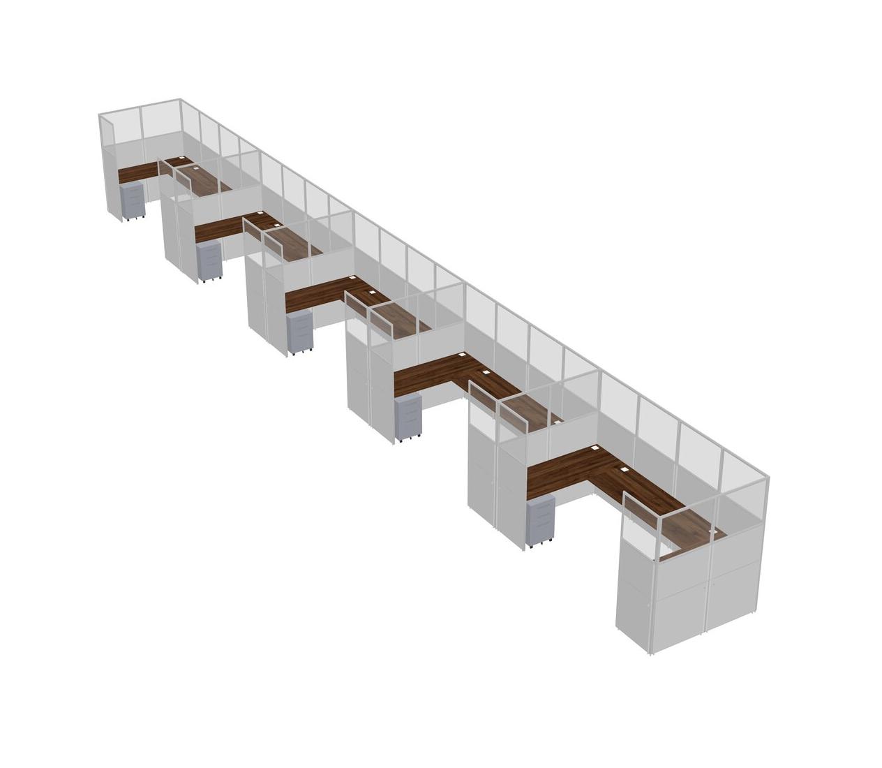 Système De Panneaux En U En Noyer Columbia Pour 5 Personnes + Tiroirs Mobiles En Métal Pour 5 Utilisateur(s)