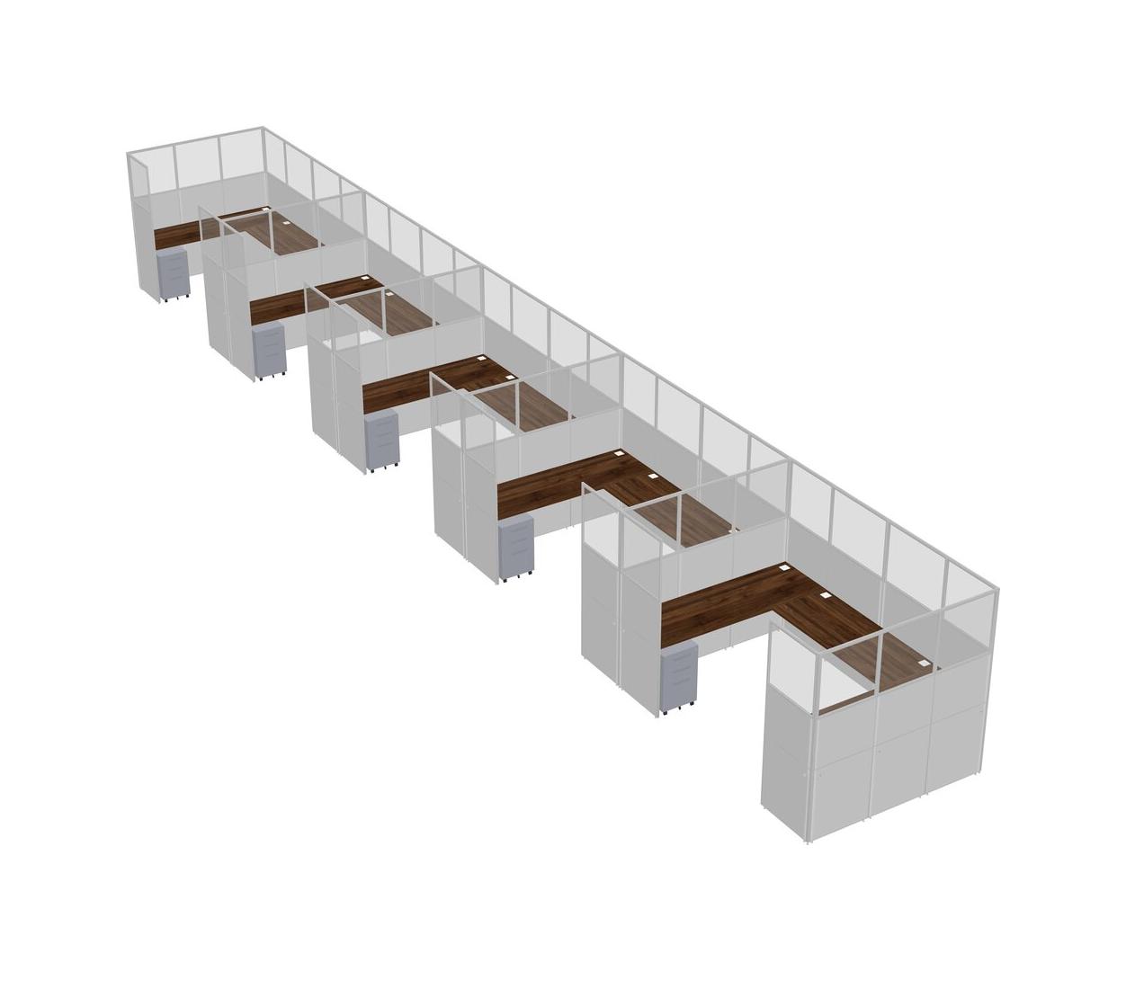 Système De Panneaux En U En Noyer Columbia Pour 5 Personnes + Tiroirs Mobiles En Métal Pour 5 Utilisateur(s)
