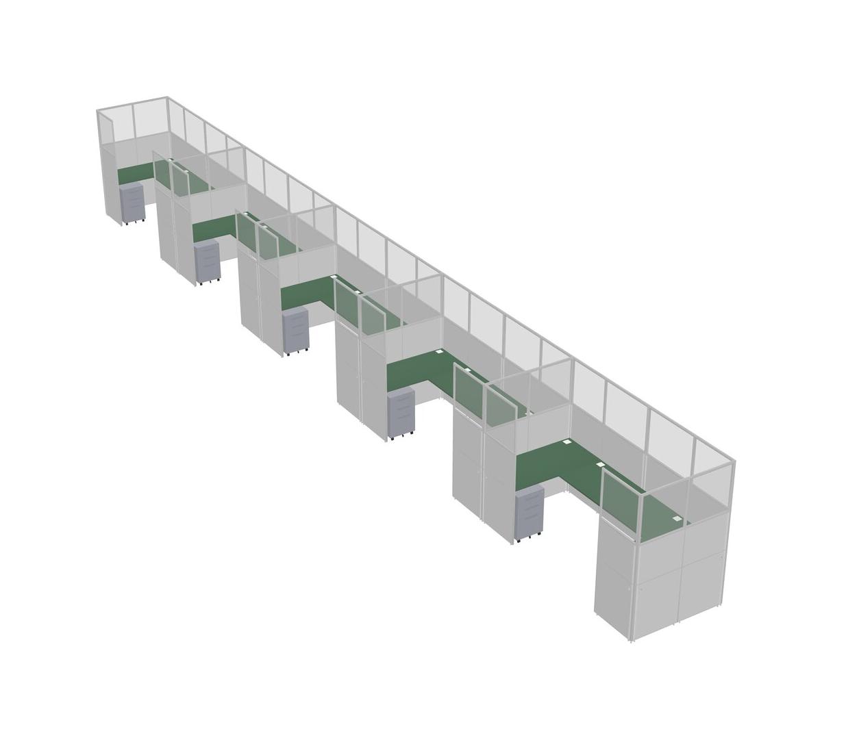 Système De Panneaux En U Vert Pour 5 Personnes + Tiroirs Mobiles En Métal Pour 5 Utilisateur(s)