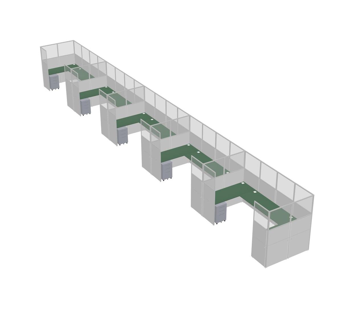 Système De Panneaux En U Vert Pour 5 Personnes + Tiroirs Mobiles En Métal Pour 5 Utilisateur(s)