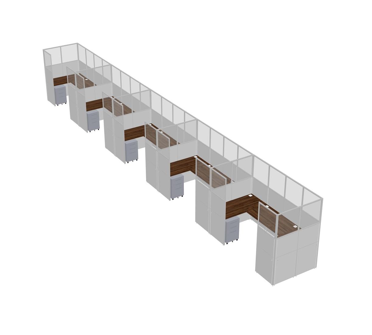 Système De Panneaux En U En Noyer Columbia Pour 5 Personnes + Tiroirs Mobiles En Métal Pour 5 Utilisateur(s)