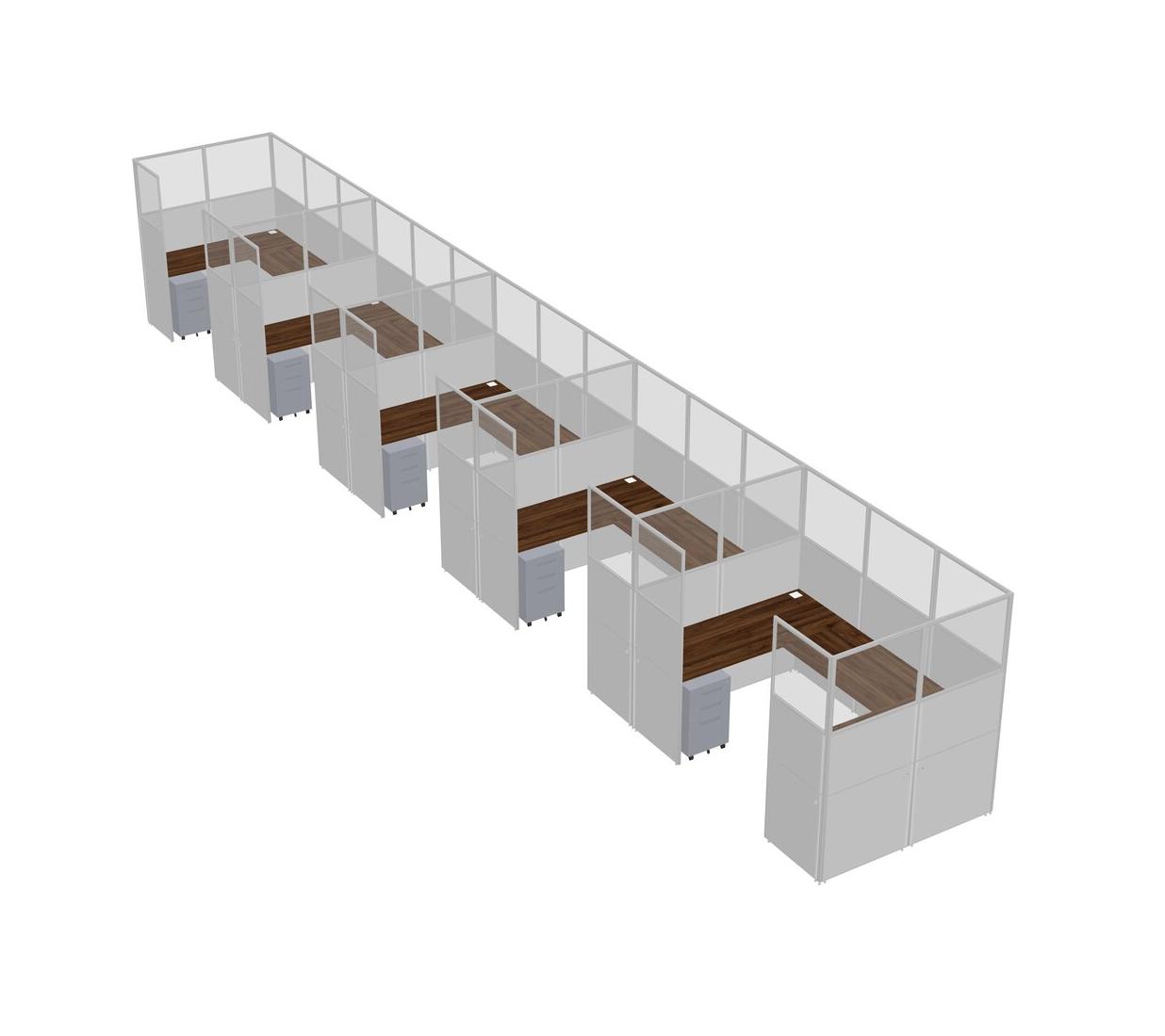 Système De Panneaux En U En Noyer Columbia Pour 5 Personnes + Tiroirs Mobiles En Métal Pour 5 Utilisateur(s)