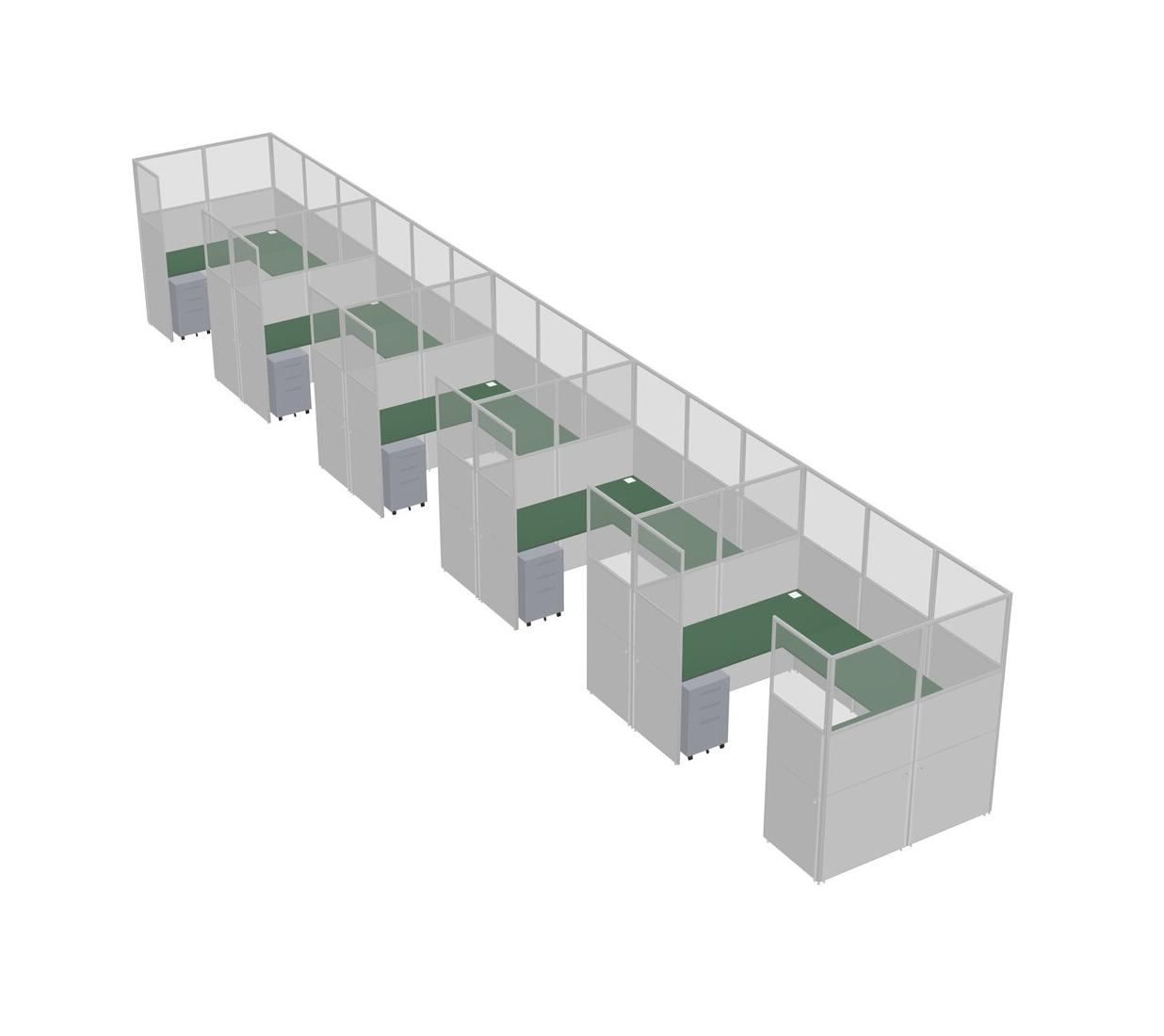 Système De Panneaux En U Vert Pour 5 Personnes + Tiroirs Mobiles En Métal Pour 5 Utilisateur(s)