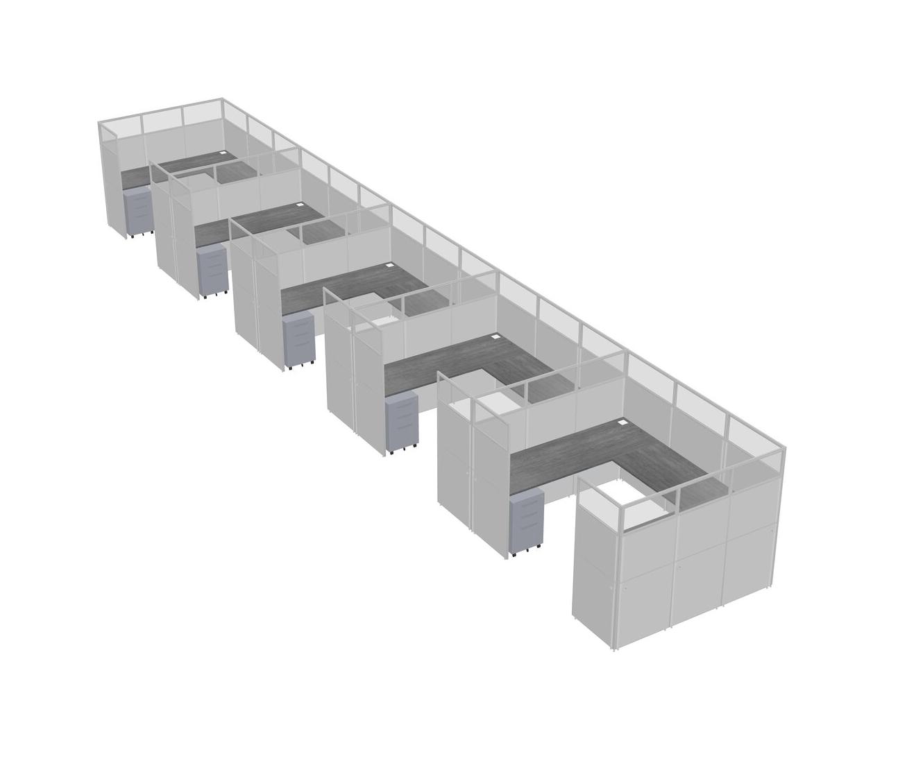 Système De Panneaux En U Gris Pour 5 Personnes + Tiroirs Mobiles En Métal Pour 5 Utilisateur(s)