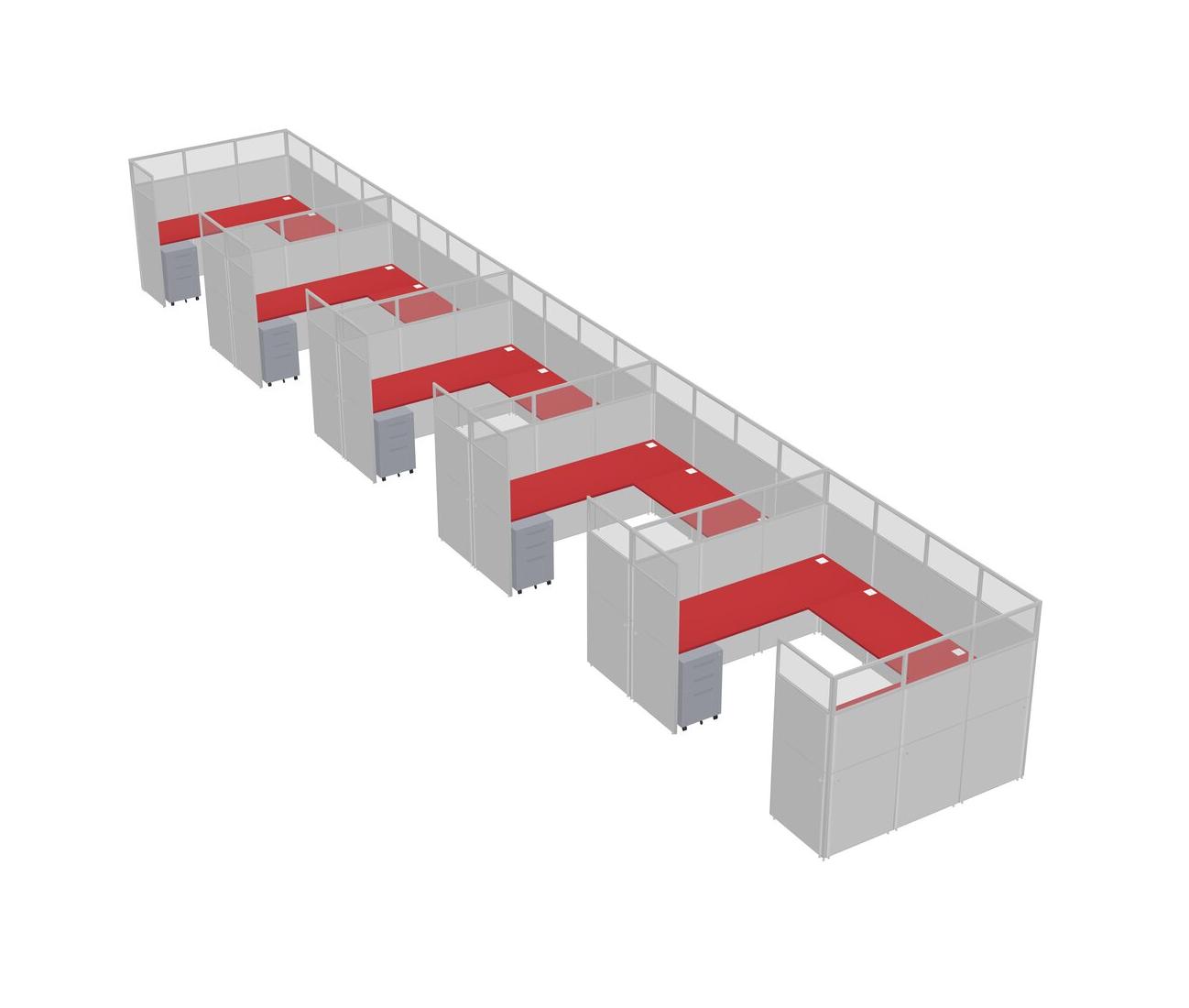 Système De Panneaux En U Prism Red Pour 5 Personnes + Tiroirs Mobiles En Métal Pour 5 Utilisateur(s)