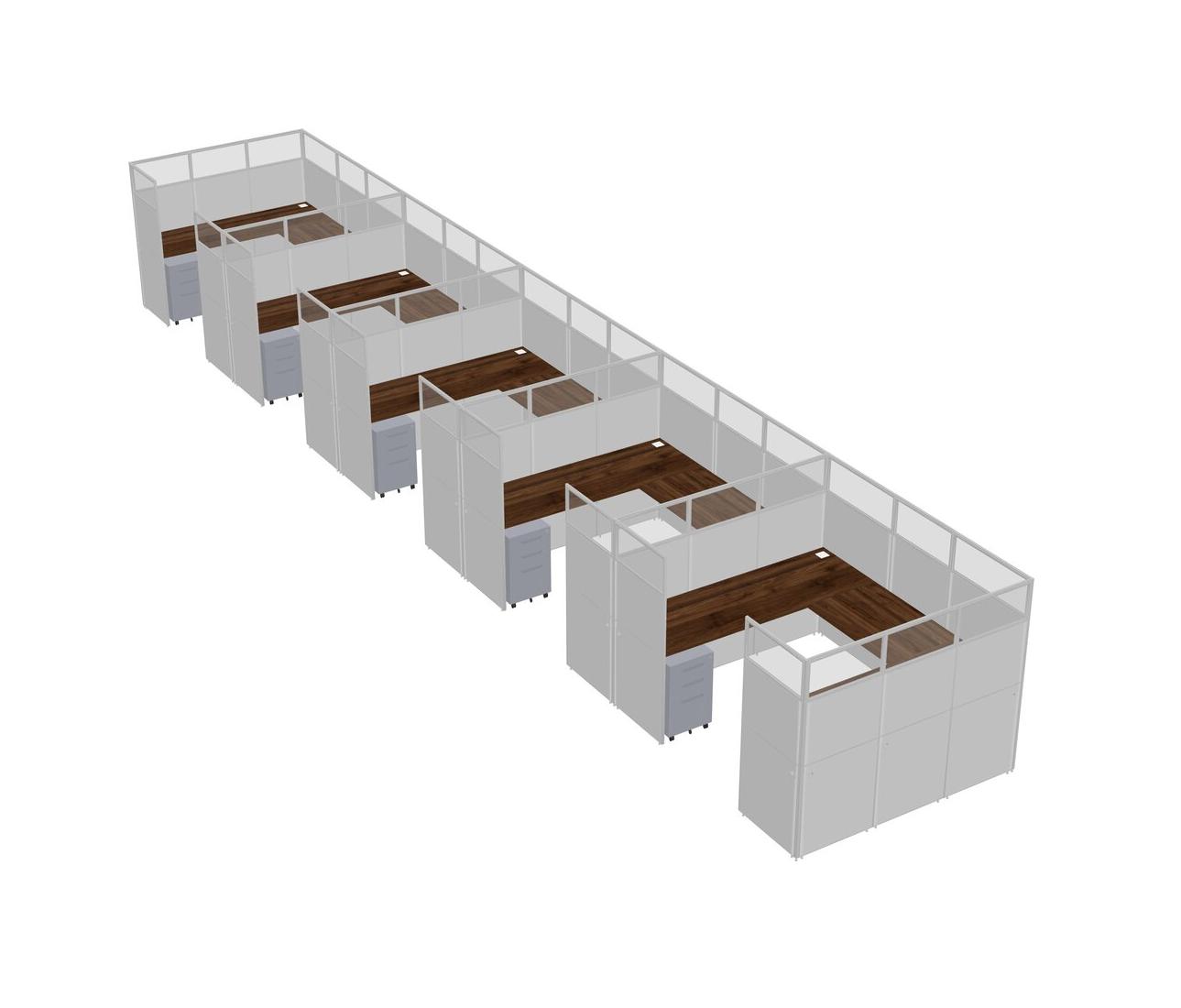 Système De Panneaux En U En Noyer Columbia Pour 5 Personnes + Tiroirs Mobiles En Métal Pour 5 Utilisateur(s)