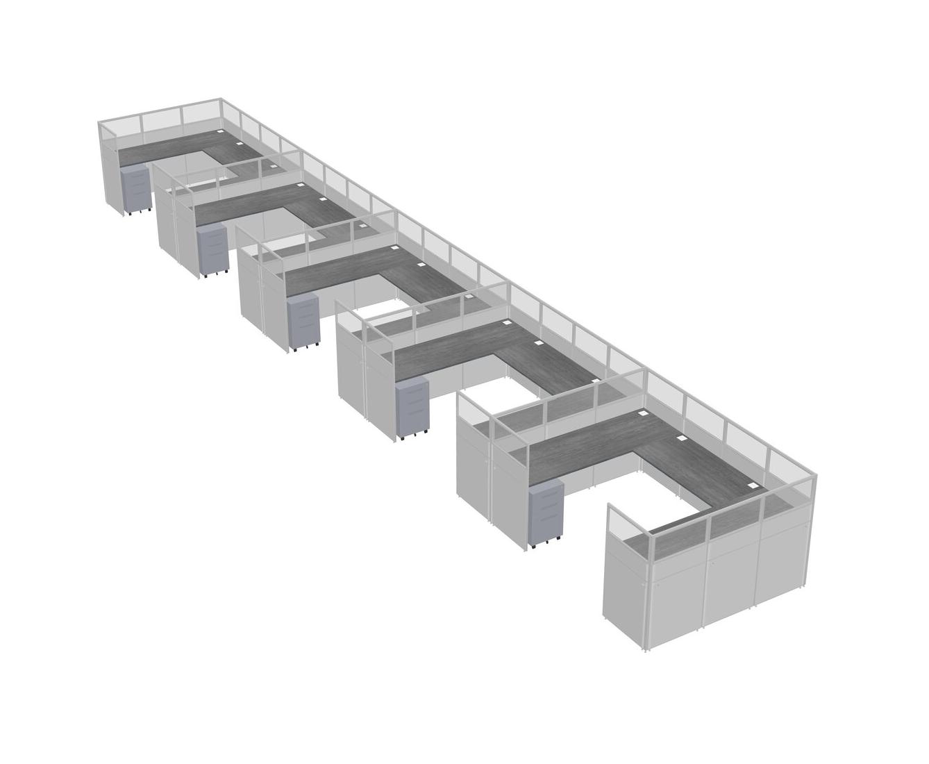 Système De Panneaux En U Gris Pour 5 Personnes + Tiroirs Mobiles En Métal Pour 5 Utilisateur(s)