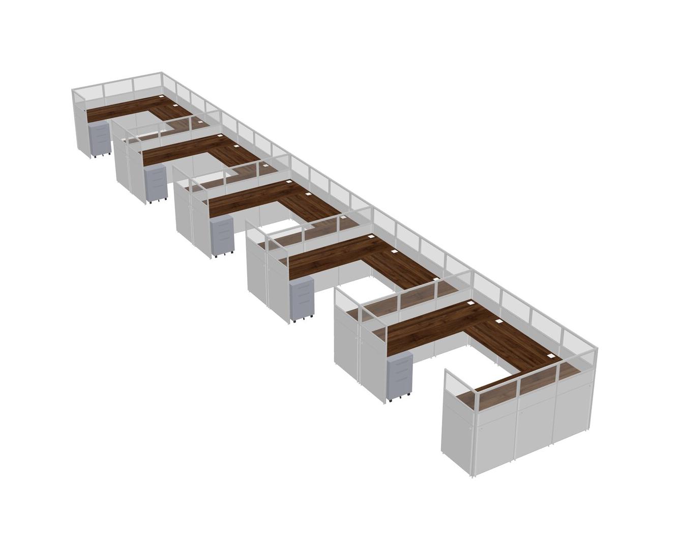 Système De Panneaux En U En Noyer Columbia Pour 5 Personnes + Tiroirs Mobiles En Métal Pour 5 Utilisateur(s)