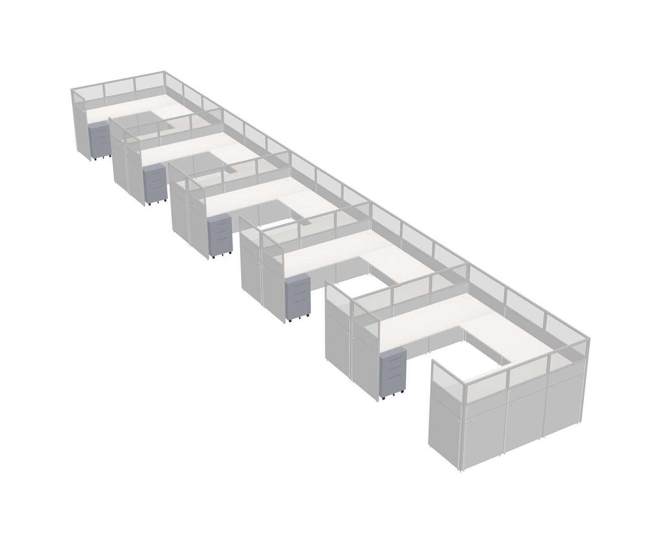 Système De Panneaux En U Blancs Pour 5 Personnes + Tiroirs Mobiles En Métal Pour 5 Utilisateur(s)