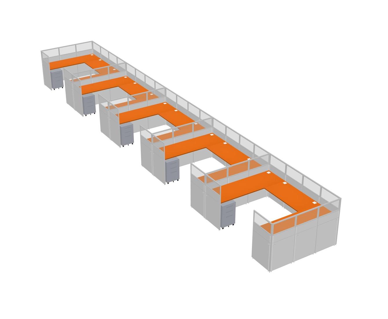 Système De Panneaux En U Orange Pour 5 Personnes + Tiroirs Mobiles En Métal Pour 5 Utilisateur(s)