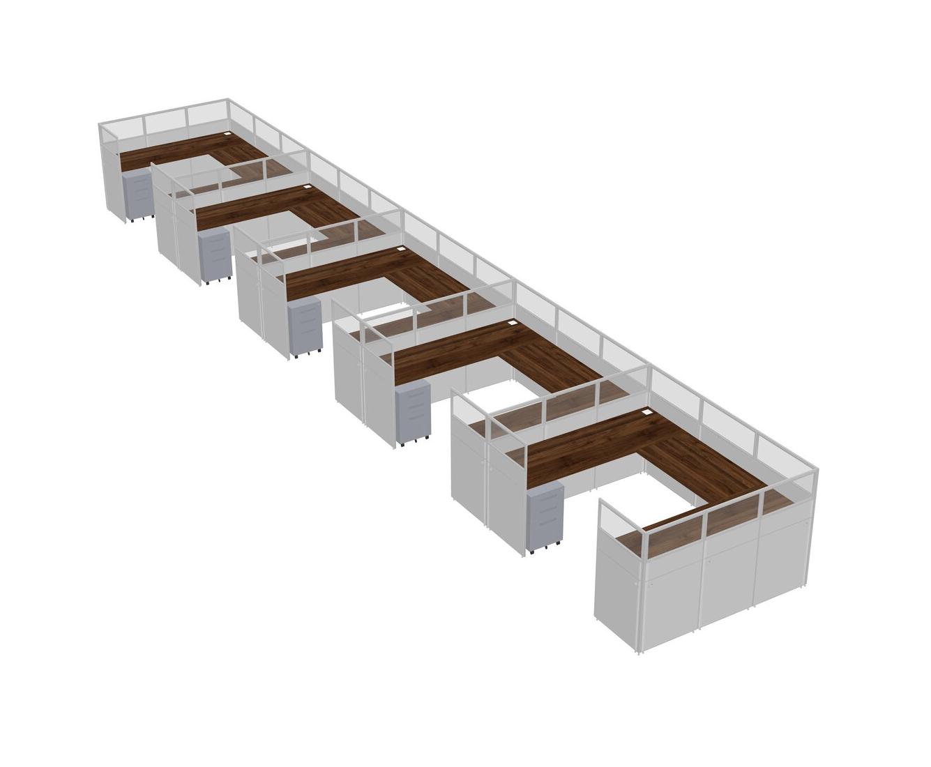 Système De Panneaux En U En Noyer Columbia Pour 5 Personnes + Tiroirs Mobiles En Métal Pour 5 Utilisateur(s)