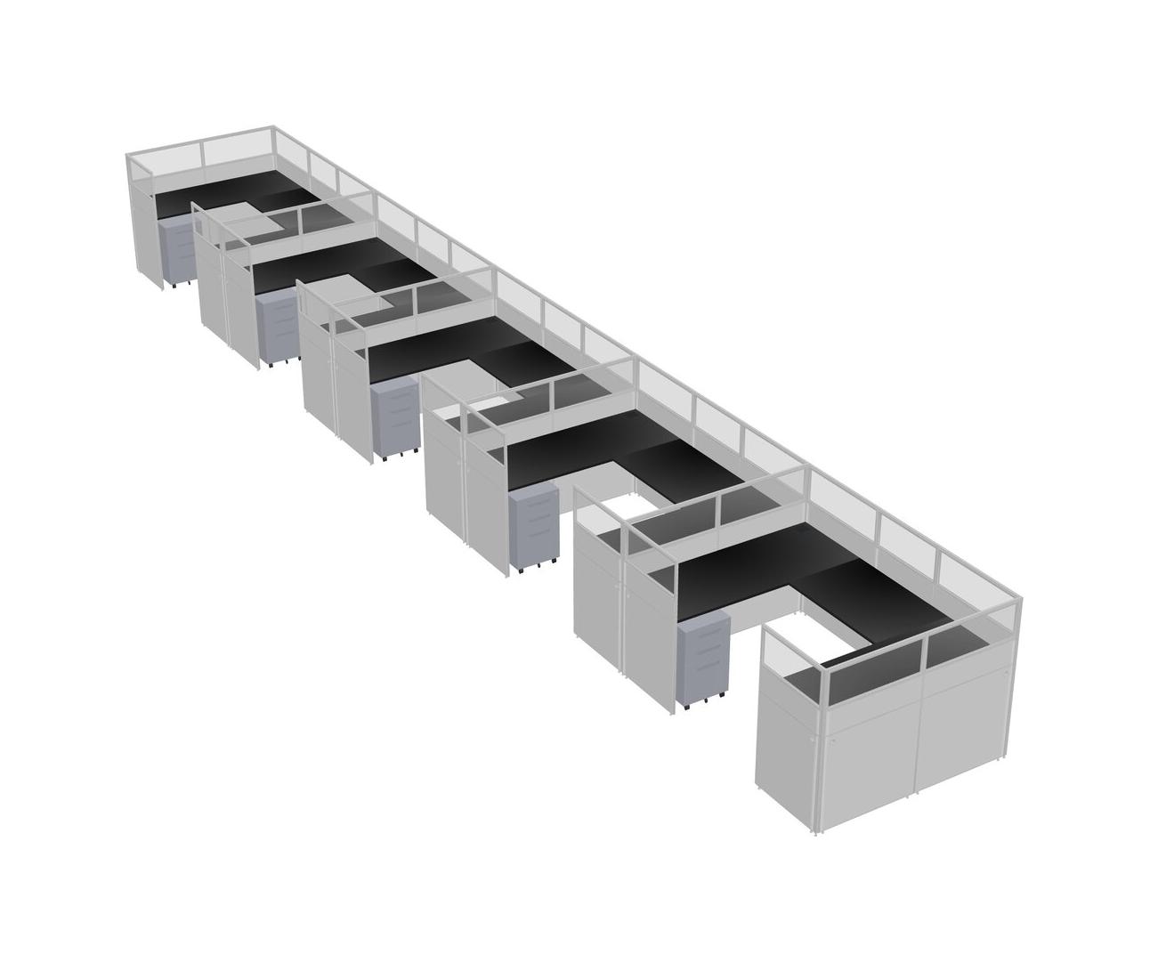 Système De Panneaux En U Noir Pour 5 Personnes + Tiroirs Mobiles En Métal Pour 5 Utilisateur(s)