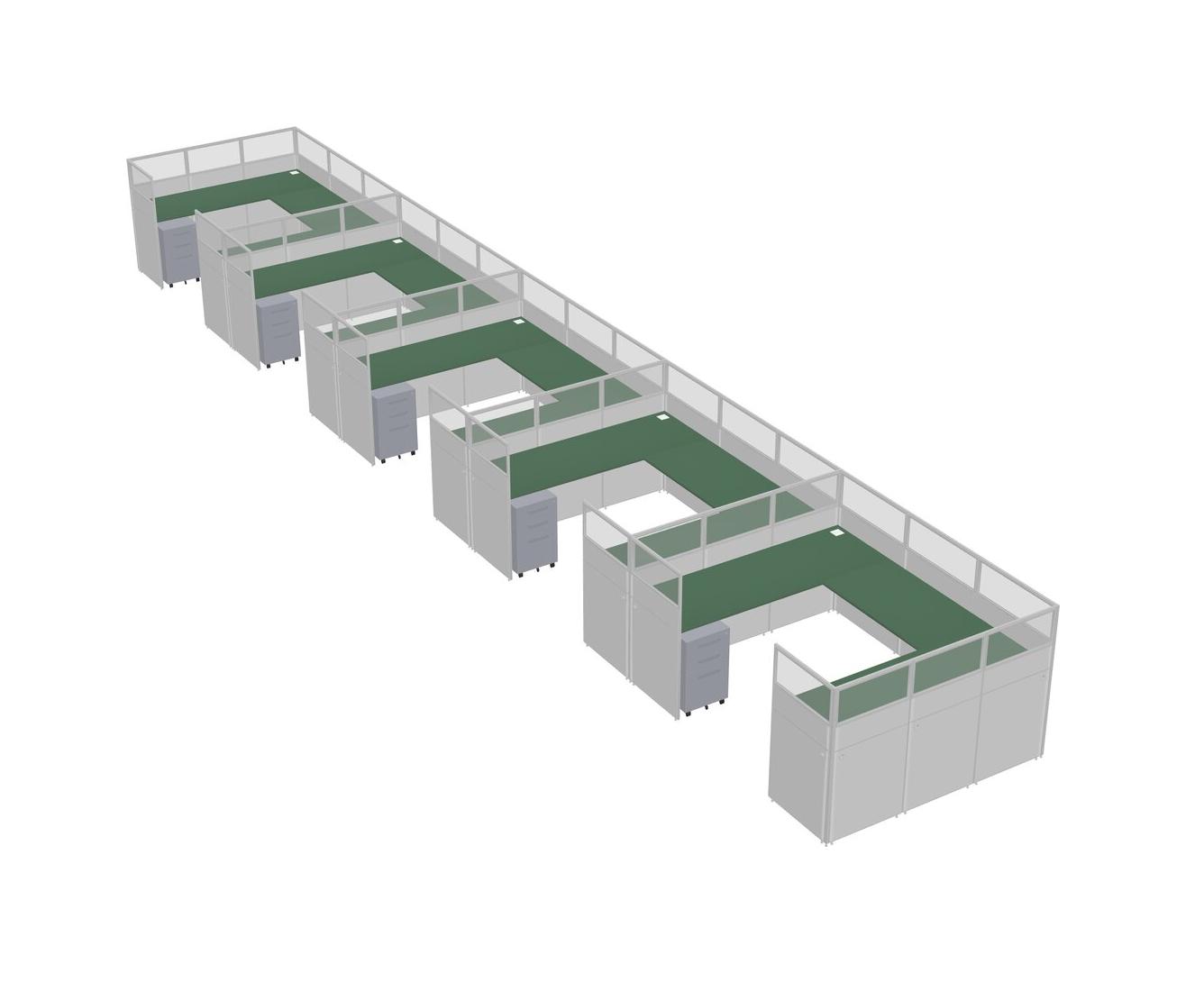 Système De Panneaux En U Vert Pour 5 Personnes + Tiroirs Mobiles En Métal Pour 5 Utilisateur(s)