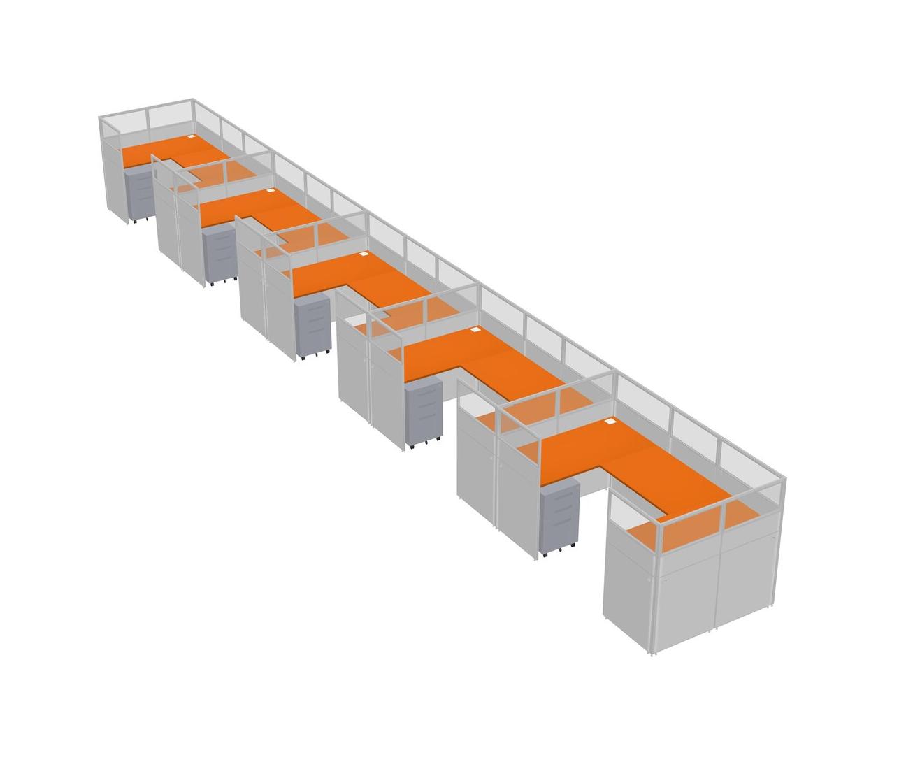 Système De Panneaux En U Orange Pour 5 Personnes + Tiroirs Mobiles En Métal Pour 5 Utilisateur(s)