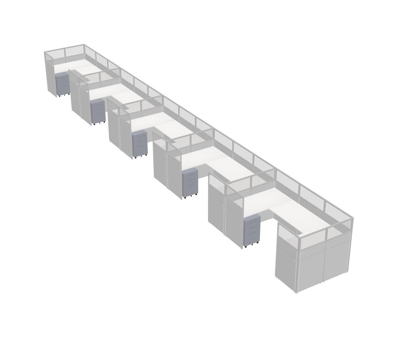 Système De Panneaux En U Blancs Pour 5 Personnes + Tiroirs Mobiles En Métal Pour 5 Utilisateur(s)