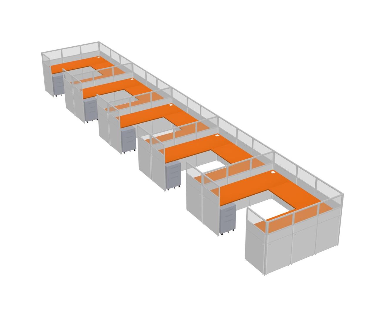 Système De Panneaux En U Orange Pour 5 Personnes + Tiroirs Mobiles En Métal Pour 5 Utilisateur(s)