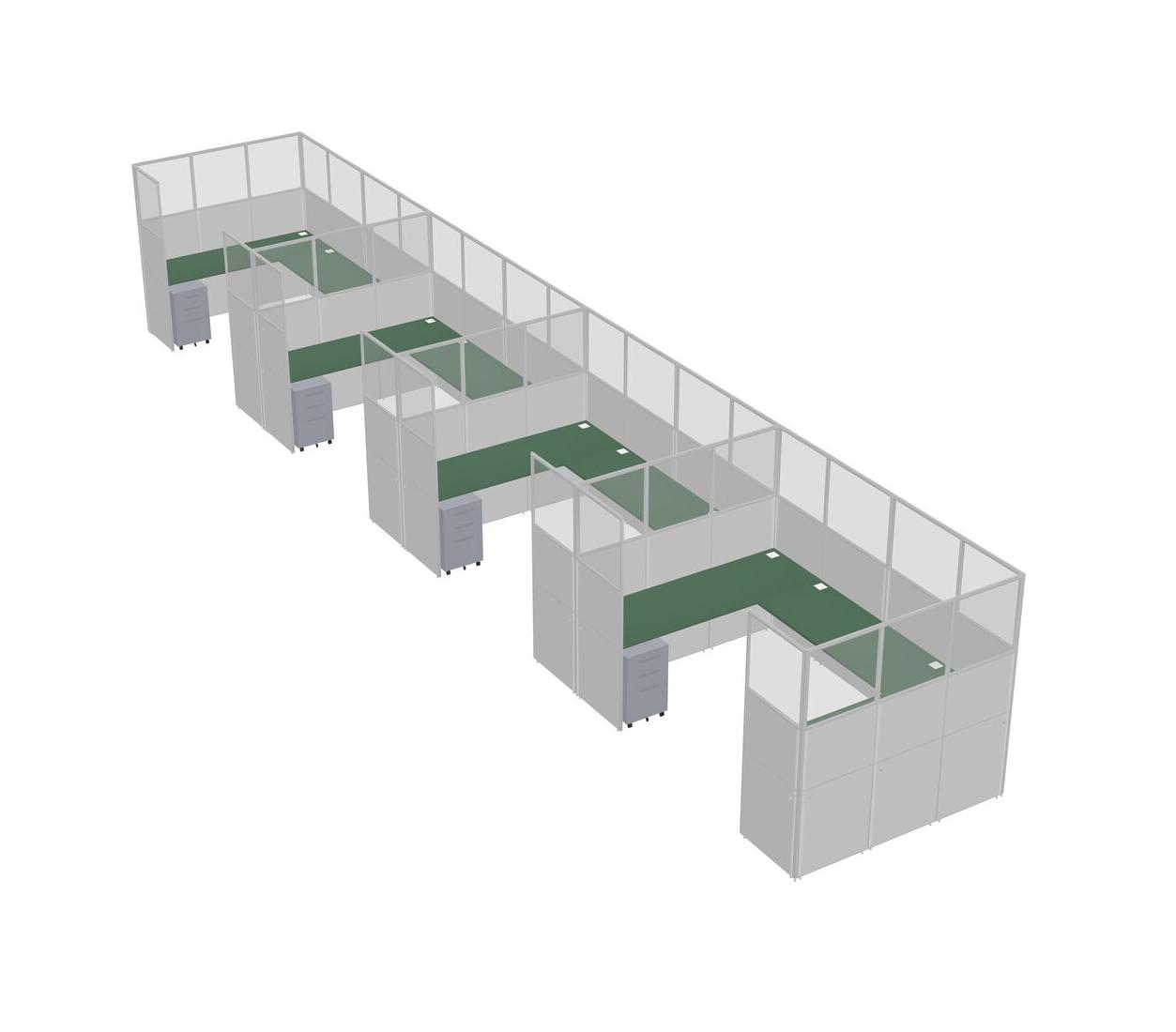 Système De Panneaux En U Vert Pour 4 Personnes + Tiroirs Mobiles En Métal Pour 4 Utilisateur(s)