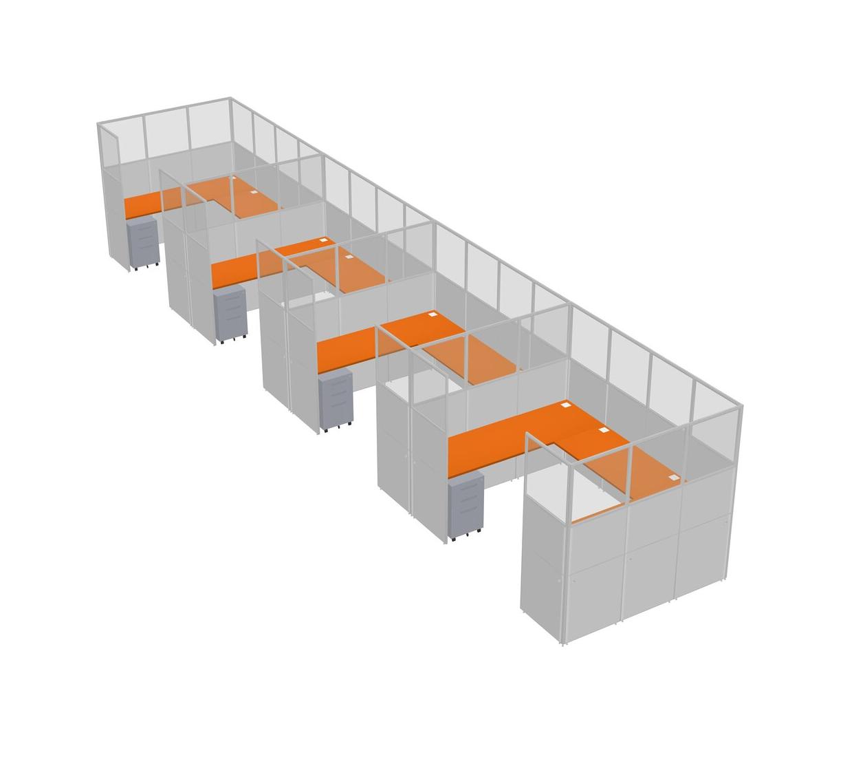 Système De Panneaux En U Orange Pour 4 Personnes + Tiroirs Mobiles En Métal Pour 4 Utilisateur(s)