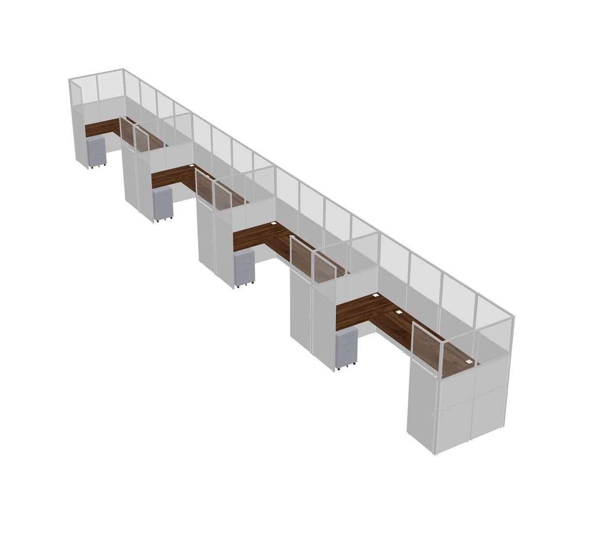 Système De Panneaux En U En Noyer Columbia Pour 4 Personnes + Tiroirs Mobiles En Métal Pour 4 Utilisateur(s)