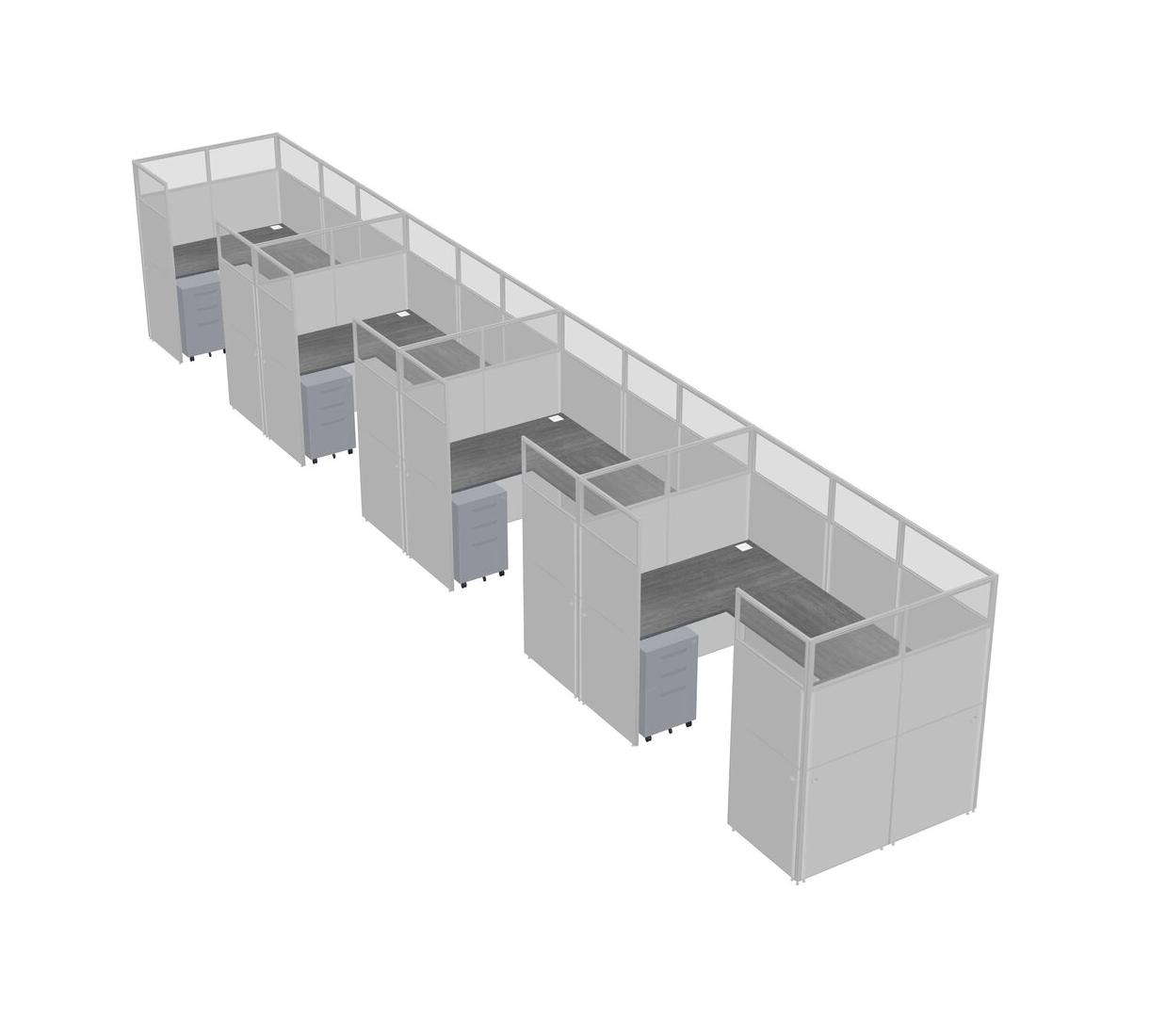 Système De Panneaux En U Gris Pour 4 Personnes + Tiroirs Mobiles En Métal Pour 4 Utilisateur(s)
