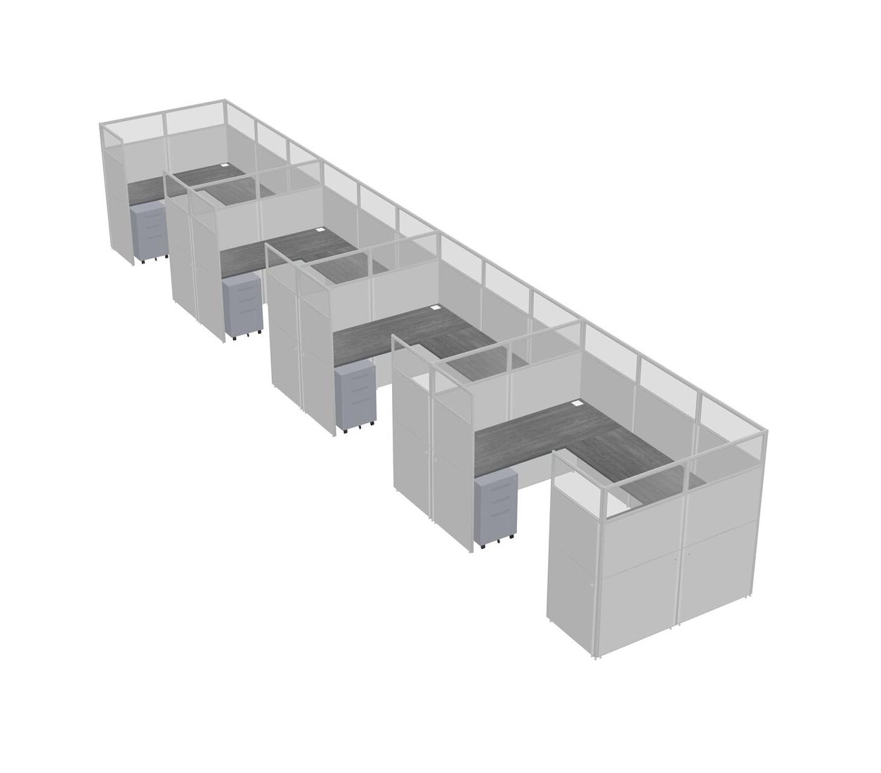 Système De Panneaux En U Gris Pour 4 Personnes + Tiroirs Mobiles En Métal Pour 4 Utilisateur(s)