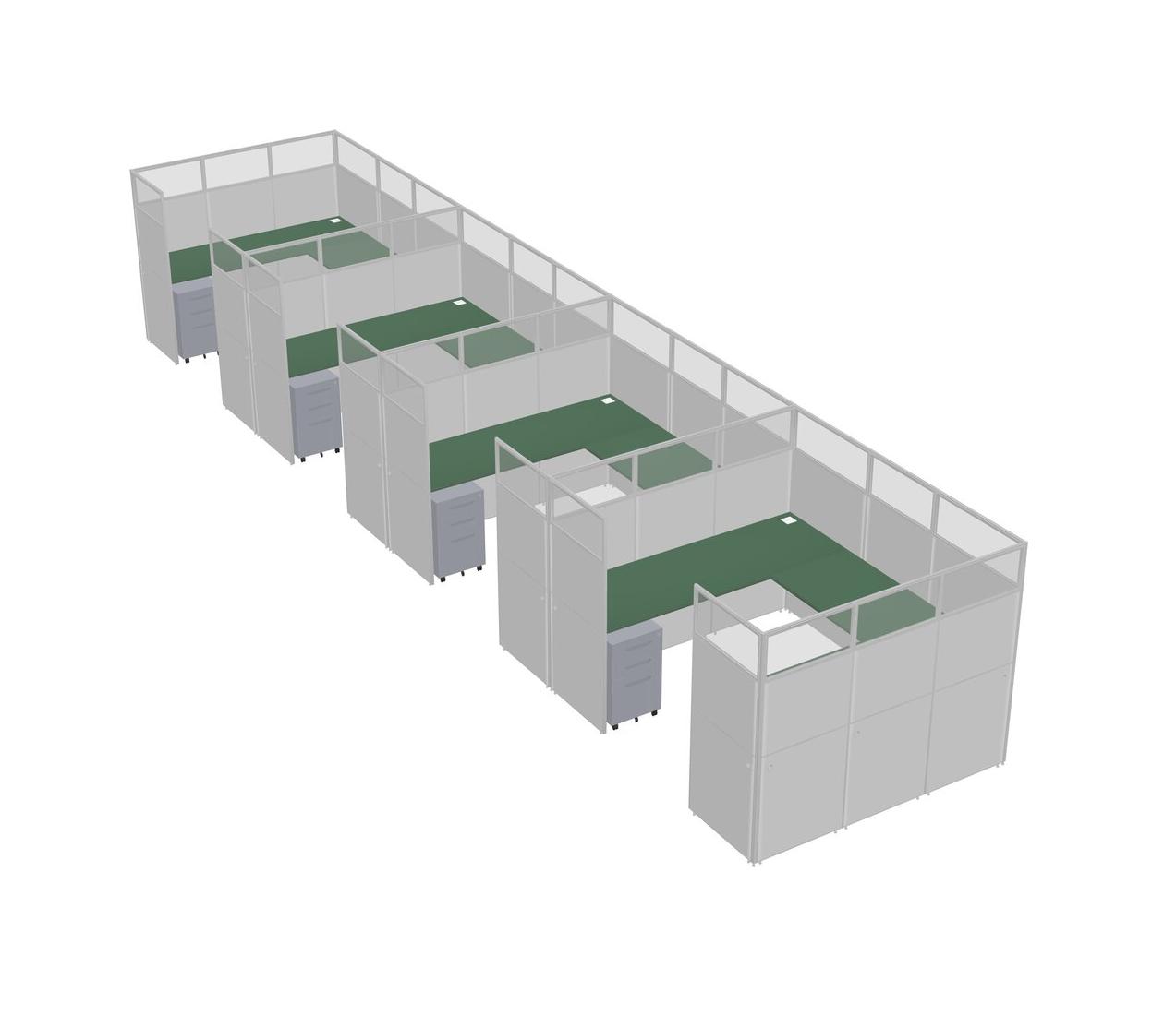 Système De Panneaux En U Vert Pour 4 Personnes + Tiroirs Mobiles En Métal Pour 4 Utilisateur(s)