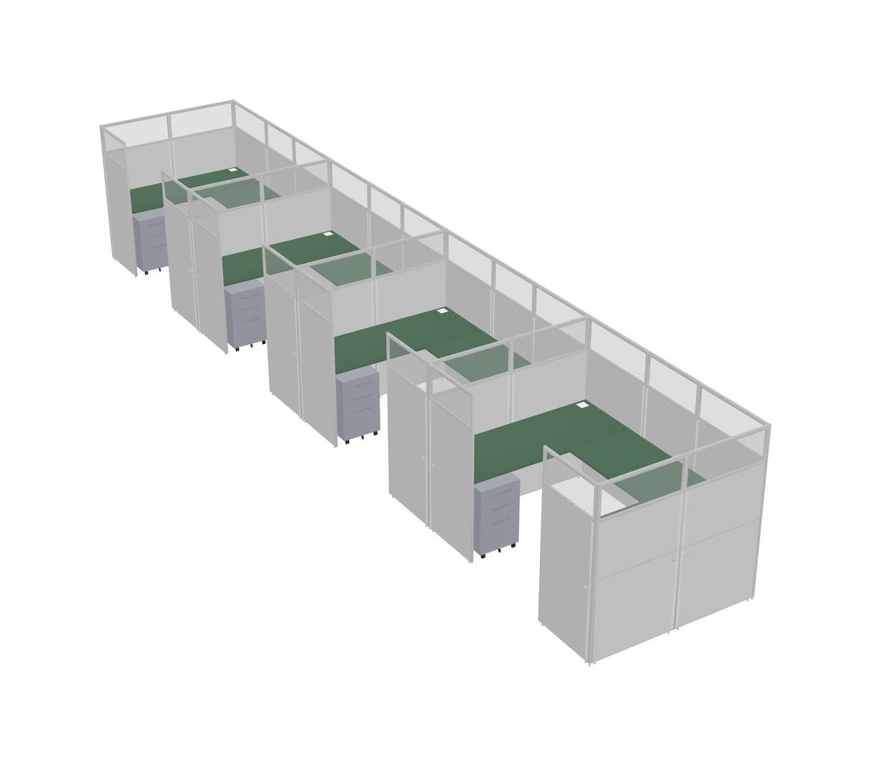Système De Panneaux En U Vert Pour 4 Personnes + Tiroirs Mobiles En Métal Pour 4 Utilisateur(s)