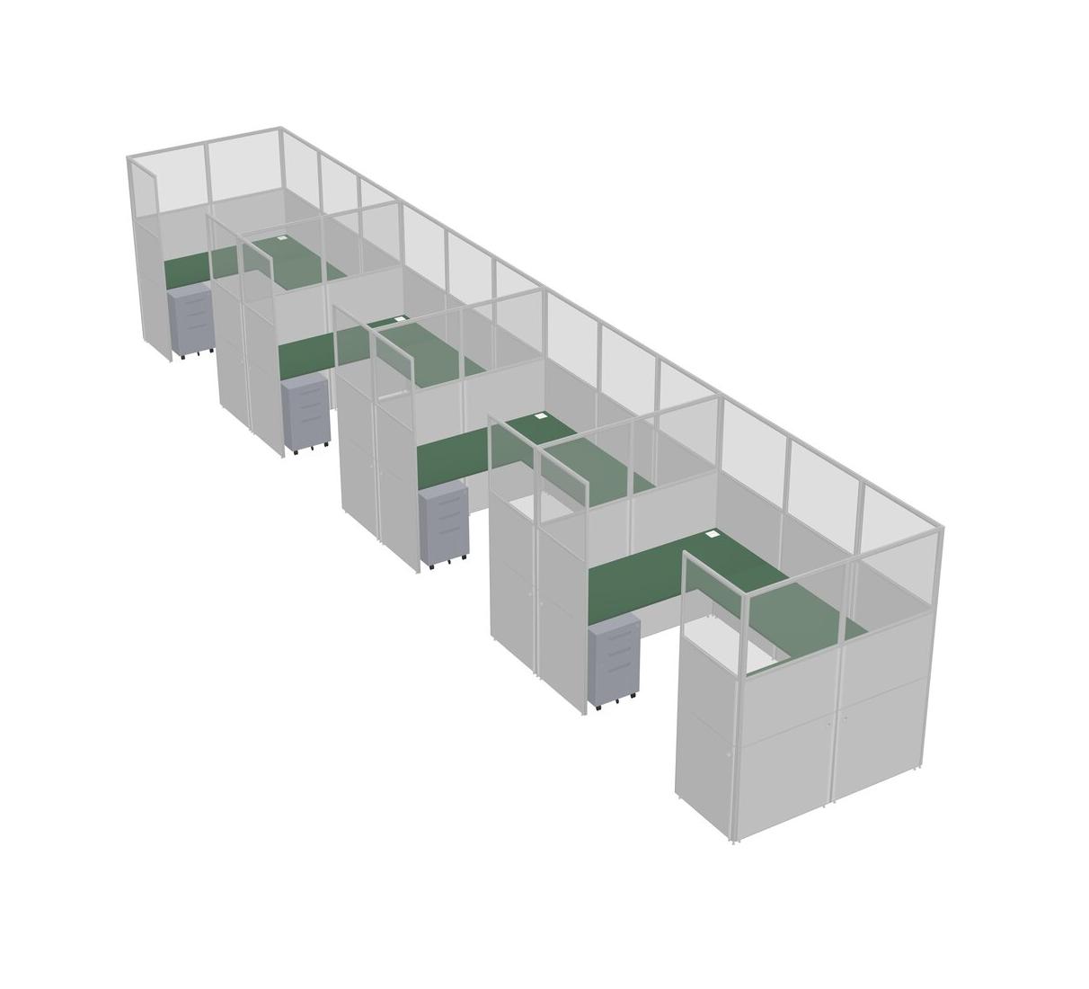 Système De Panneaux En U Vert Pour 4 Personnes + Tiroirs Mobiles En Métal Pour 4 Utilisateur(s)
