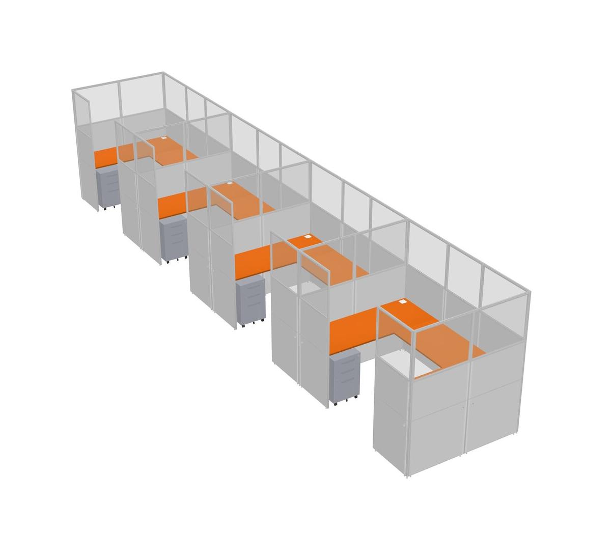 Système De Panneaux En U Orange Pour 4 Personnes + Tiroirs Mobiles En Métal Pour 4 Utilisateur(s)