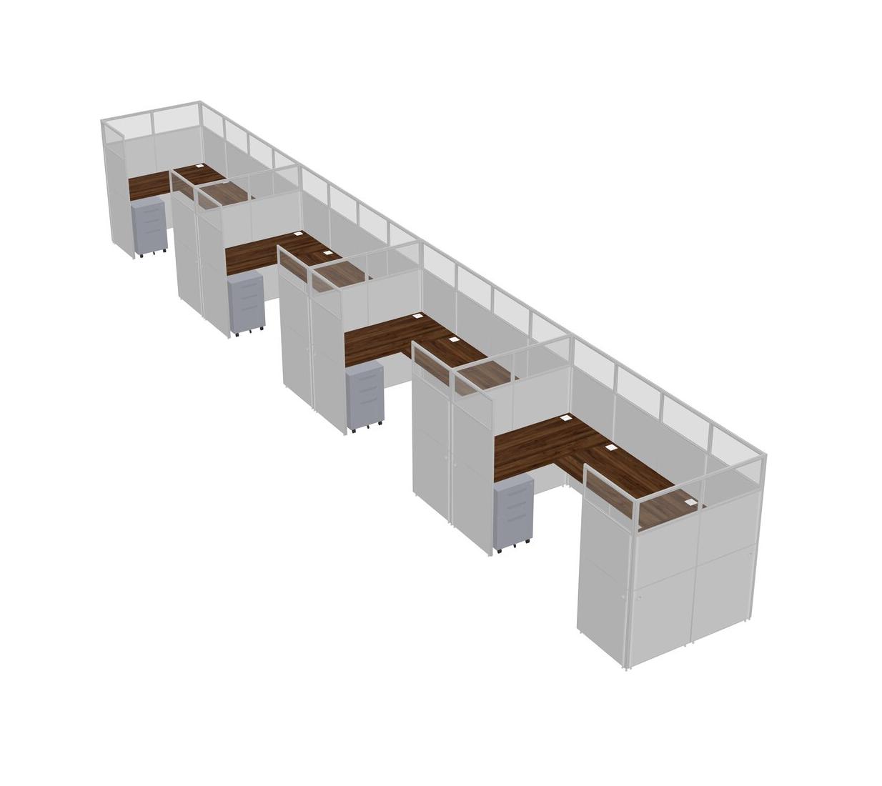 Système De Panneaux En U En Noyer Columbia Pour 4 Personnes + Tiroirs Mobiles En Métal Pour 4 Utilisateur(s)