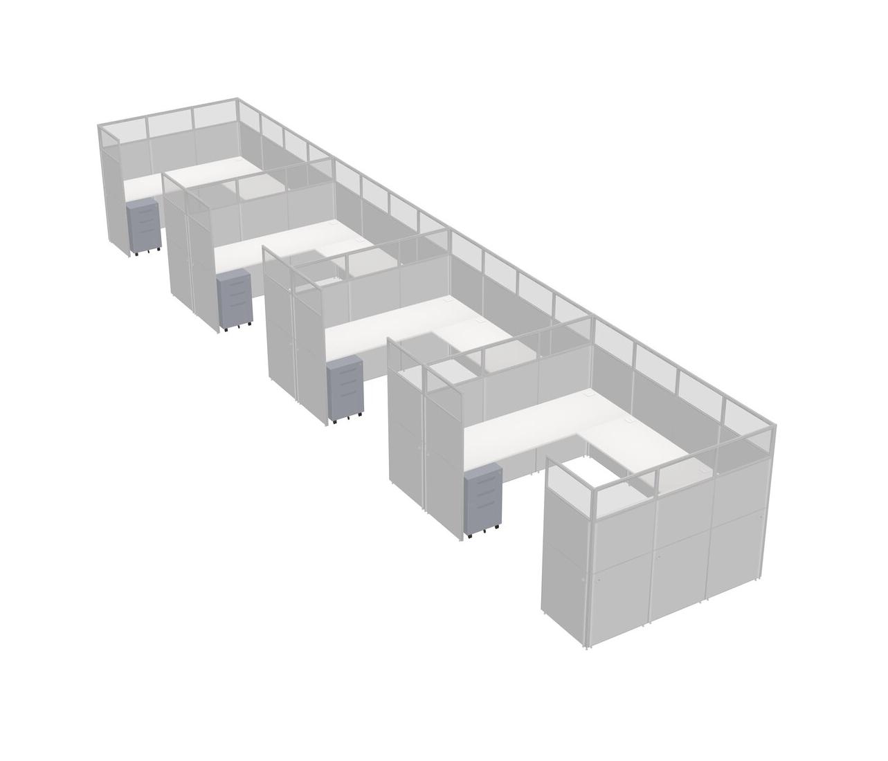 Système De Panneaux En U Blanc Pour 4 Personnes + Tiroirs Mobiles En Métal Pour 4 Utilisateur(s)