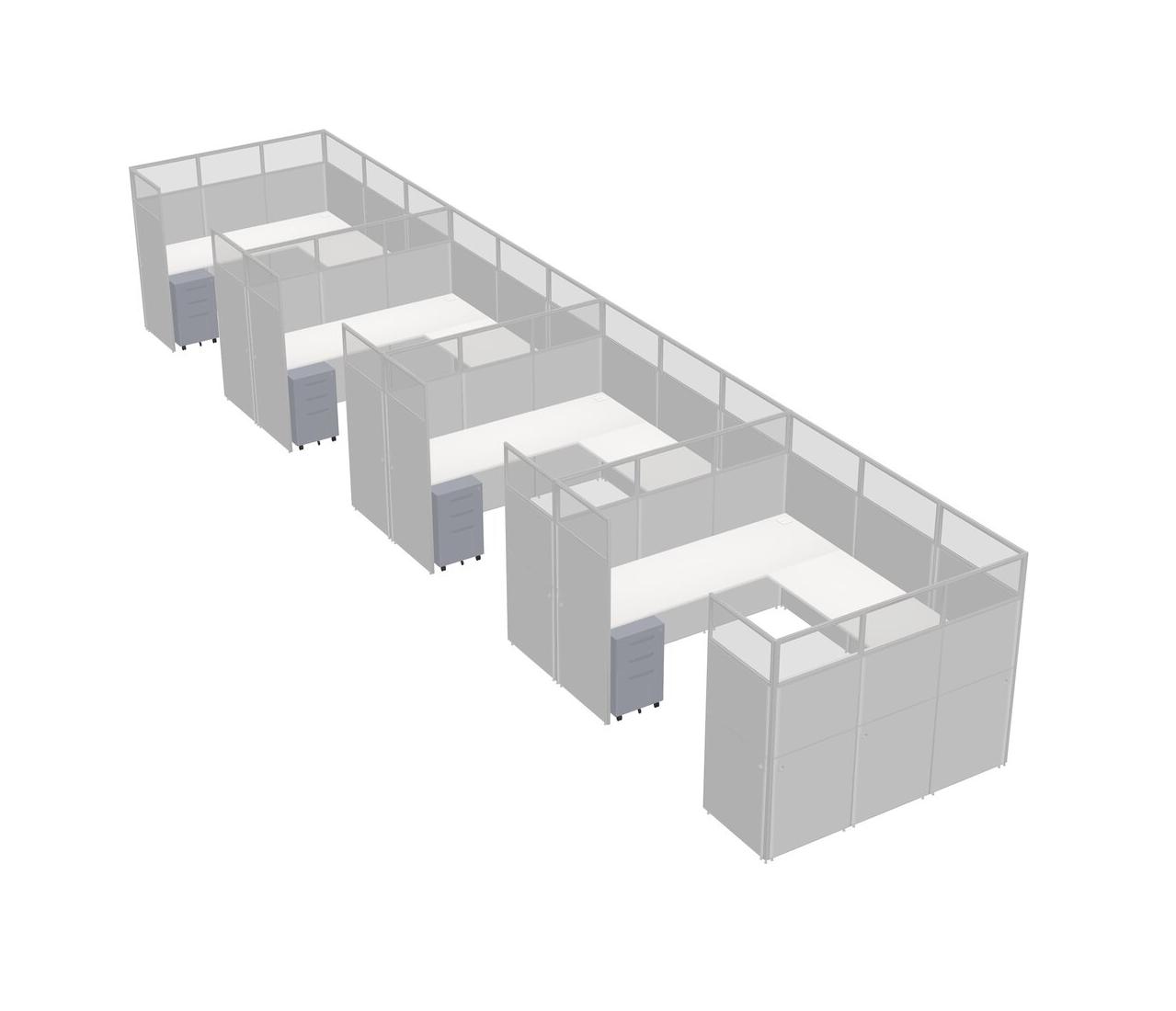 Système De Panneaux En U Blanc Pour 4 Personnes + Tiroirs Mobiles En Métal Pour 4 Utilisateur(s)