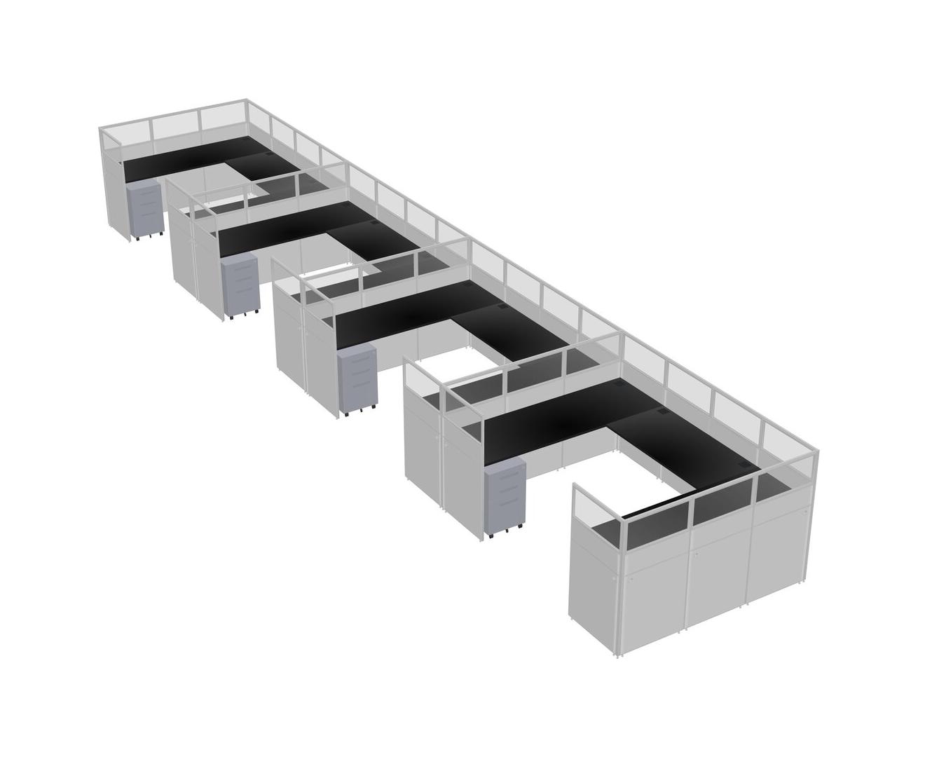 Système De Panneaux En U Noir Pour 4 Personnes + Tiroirs Mobiles En Métal Pour 4 Utilisateur(s)