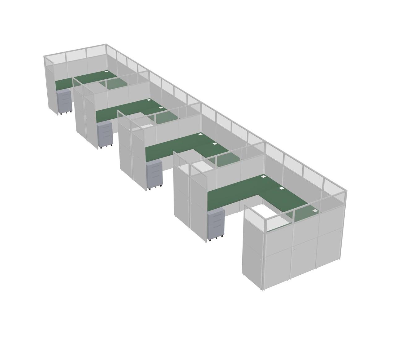 Système De Panneaux En U Vert Pour 4 Personnes + Tiroirs Mobiles En Métal Pour 4 Utilisateur(s)