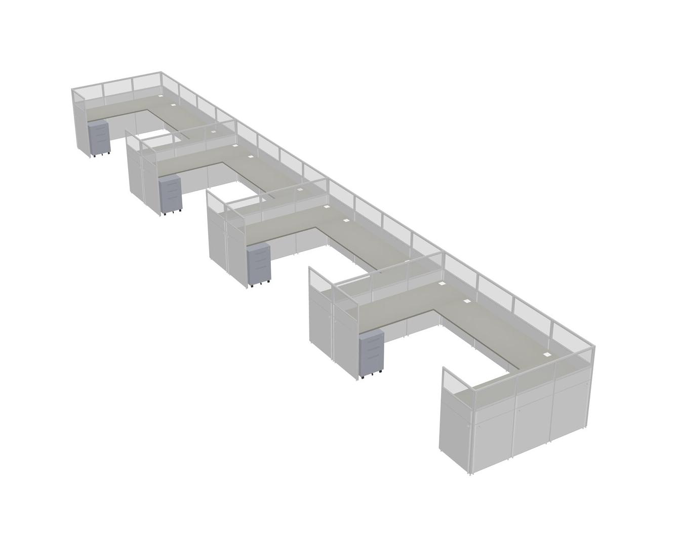 Système De Panneaux En U Grey Shadows Pour 4 Personnes + Tiroirs Mobiles En Métal Pour 4 Utilisateur(s)