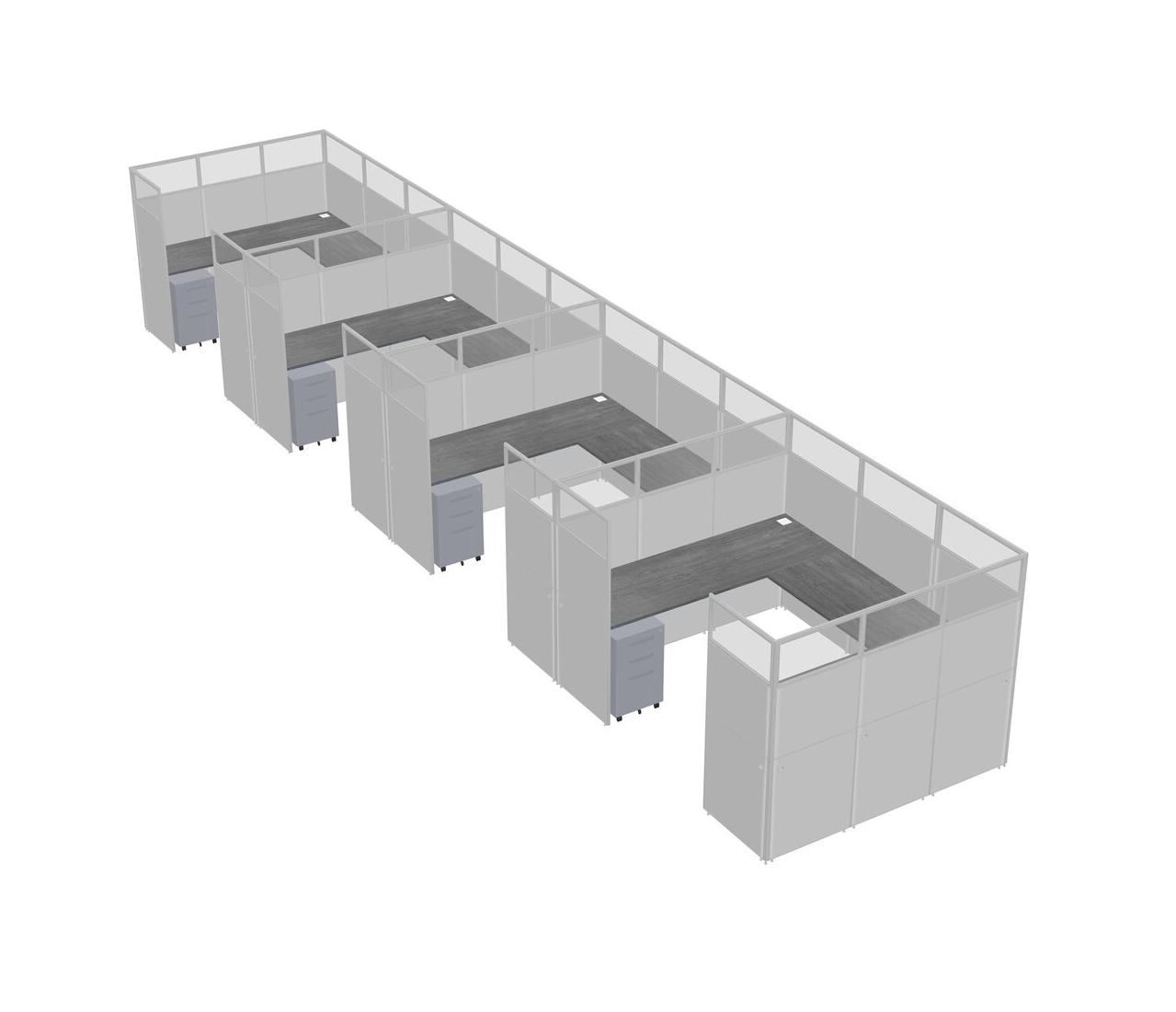 Système De Panneaux En U Gris Pour 4 Personnes + Tiroirs Mobiles En Métal Pour 4 Utilisateur(s)