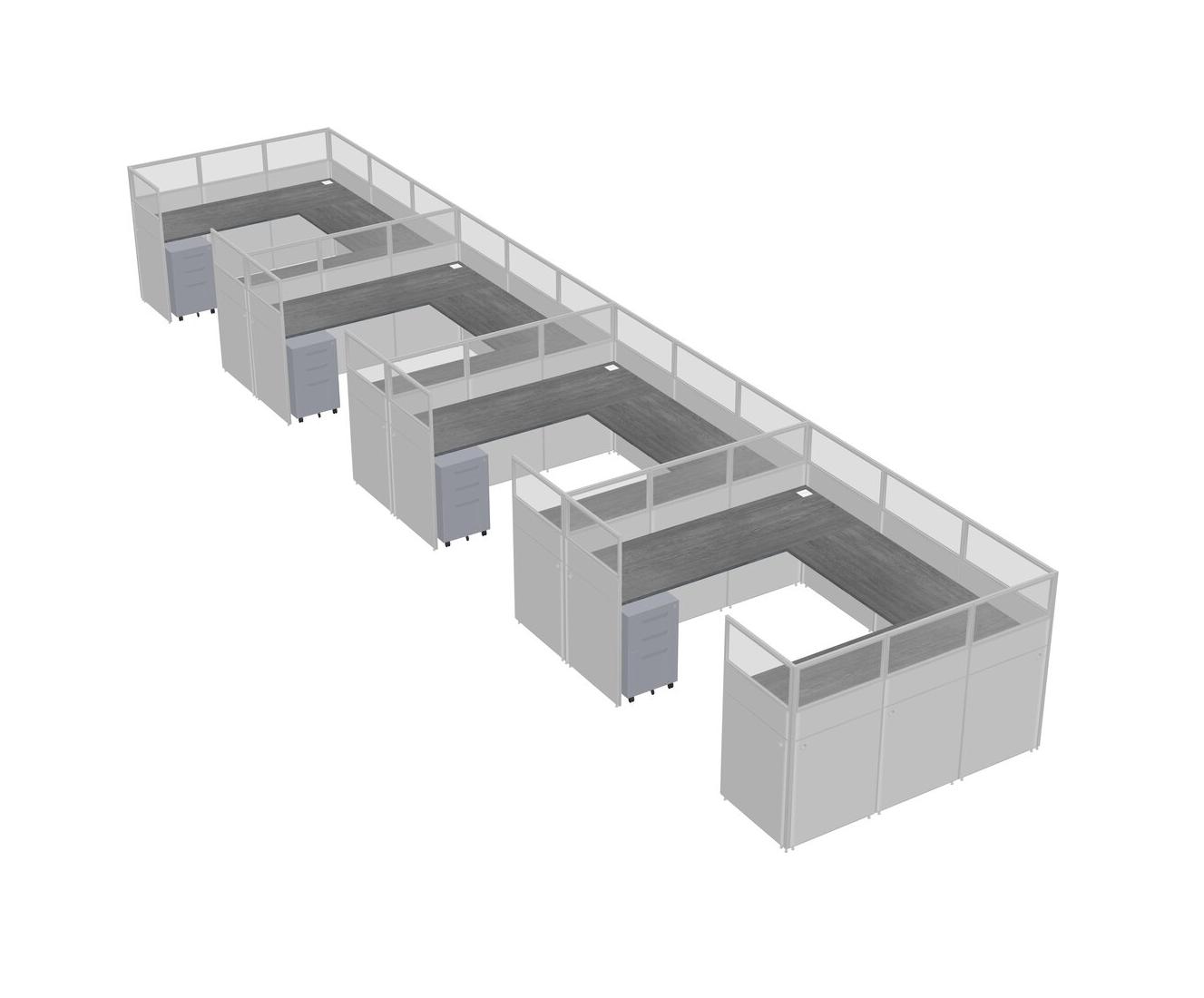 Système De Panneaux En U Gris Pour 4 Personnes + Tiroirs Mobiles En Métal Pour 4 Utilisateur(s)