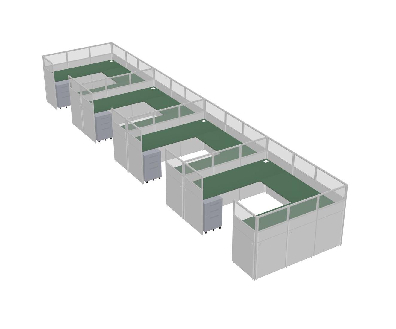 Système De Panneaux En U Vert Pour 4 Personnes + Tiroirs Mobiles En Métal Pour 4 Utilisateur(s)