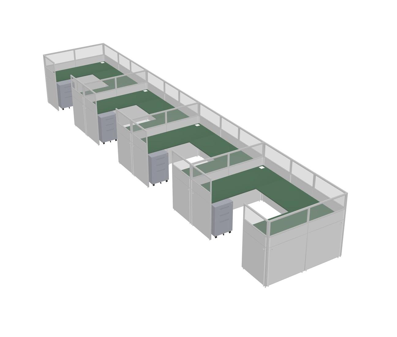 Système De Panneaux En U Vert Pour 4 Personnes + Tiroirs Mobiles En Métal Pour 4 Utilisateur(s)