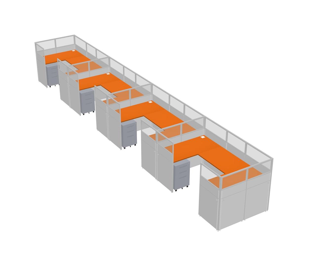 Système De Panneaux En U Orange Pour 4 Personnes + Tiroirs Mobiles En Métal Pour 4 Utilisateur(s)