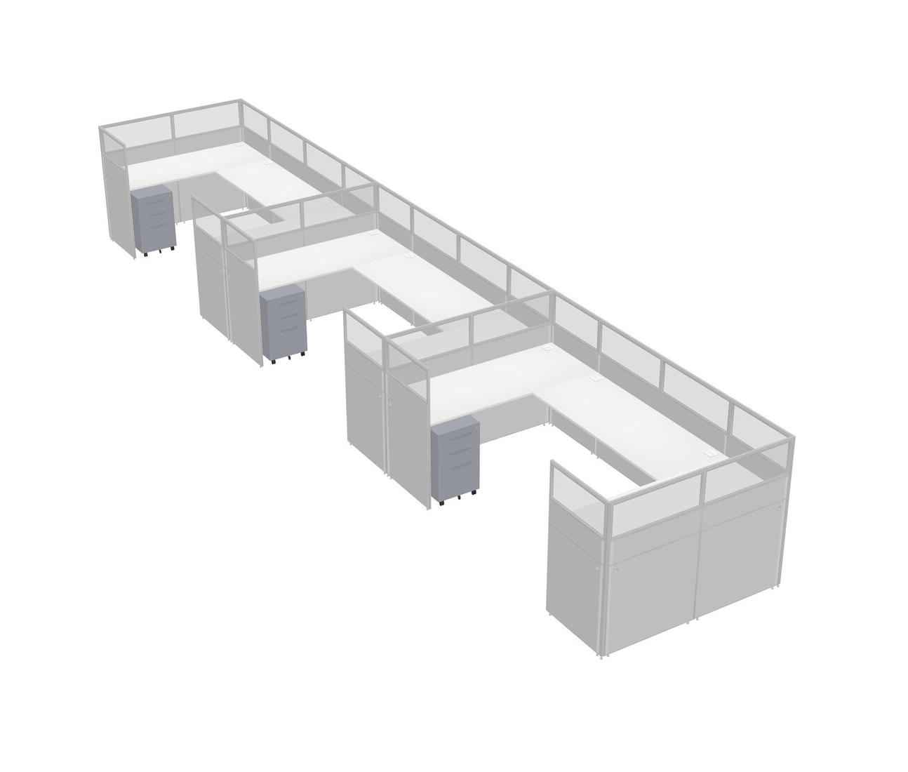 Système De Panneaux En U Blanc Pour 3 Personnes + Tiroirs Mobiles En Métal Pour 3 Utilisateur(s)
