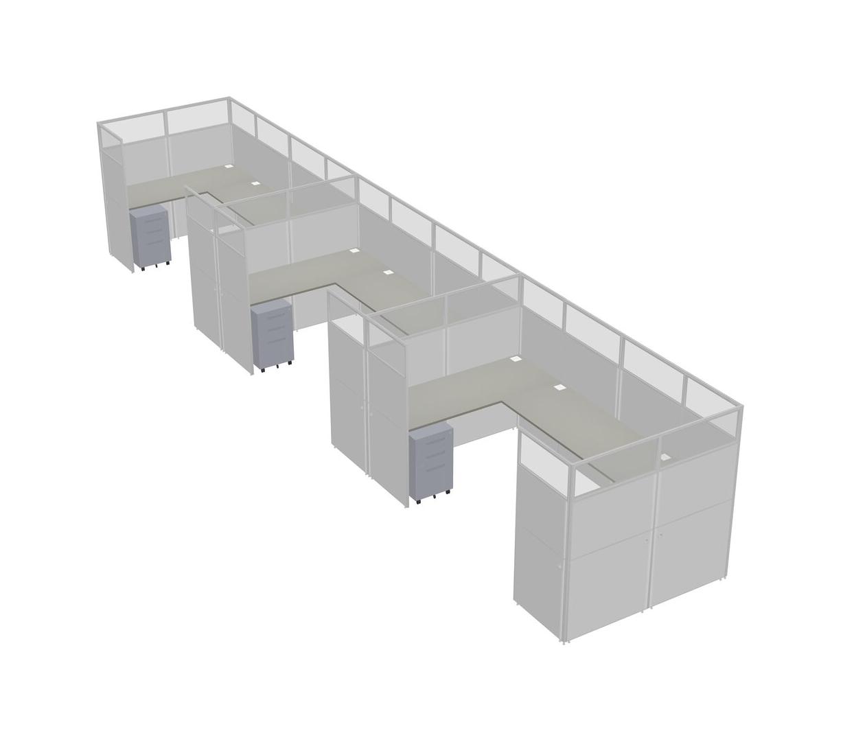 Système De Panneaux En U Grey Shadows Pour 3 Personnes + Tiroirs Mobiles En Métal Pour 3 Utilisateur(s)