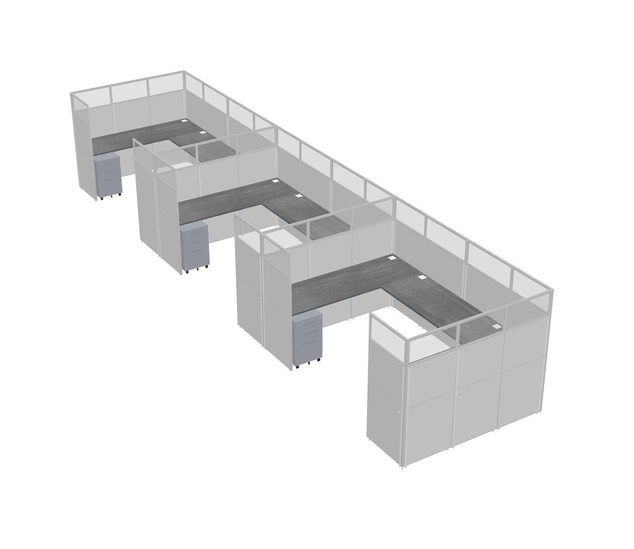 Système De Panneaux En U Gris Pour 3 Personnes + Tiroirs Mobiles En Métal Pour 3 Utilisateur(s)