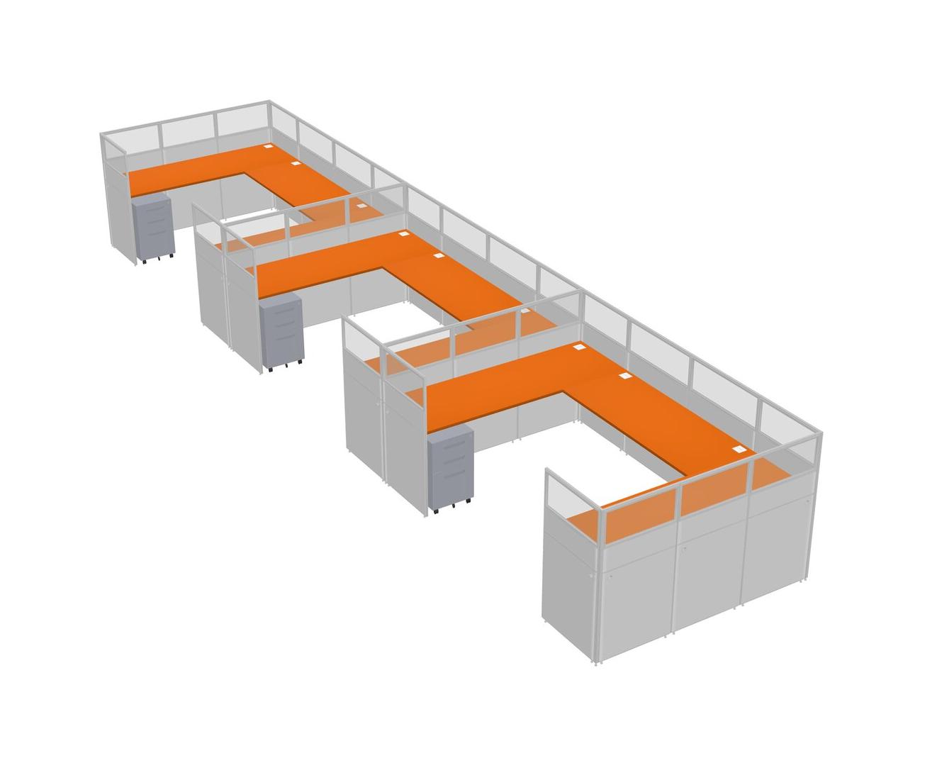 Système De Panneaux En U Orange Pour 3 Personnes + Tiroirs Mobiles En Métal Pour 3 Utilisateur(s)