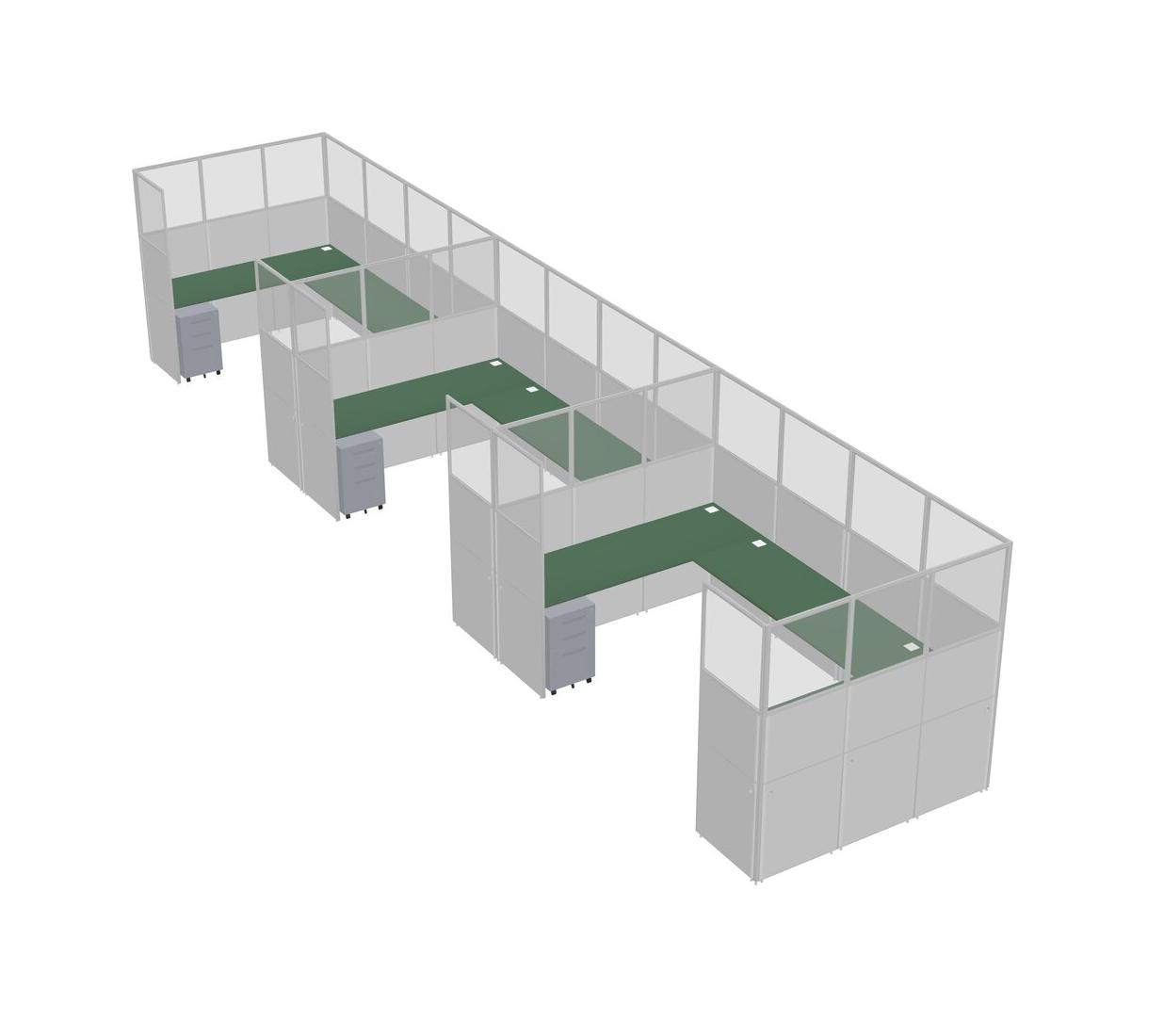 Système De Panneaux En U Vert Pour 3 Personnes + Tiroirs Mobiles En Métal Pour 3 Utilisateur(s)
